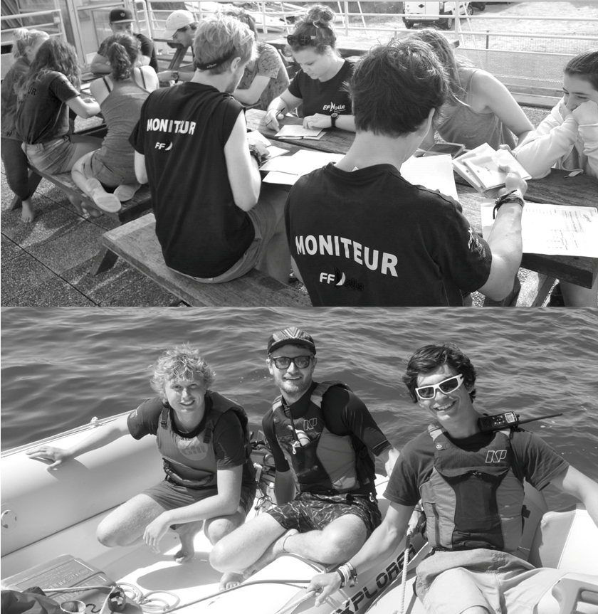 Les Aide-moniteurs ou Aide-monitrices sont de jeunes bénévoles qui souhaitent participer à la vie quotidienne de l'école de voile. Heureux de vous aider pour vous mettre à l'eau lors des stages ou des locations, ils secondent les moniteurs et en profitent pour approfondir leurs connaissances. Les Aide-moniteurs ou Aide-monitrices sont engagés vers un apprentissage du monitorat.
